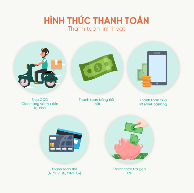 Thanh toán bằng tiền mặt hoặc qua tài khoản ngân hàng.