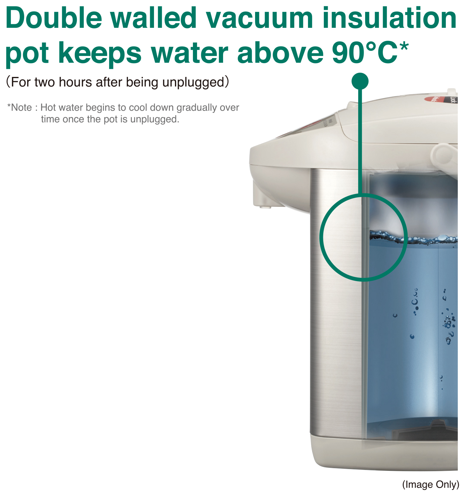 * Ghi chú: Nước nóng bắt đầu nguội dần theo thời gian khi bình được rút phích cắm.