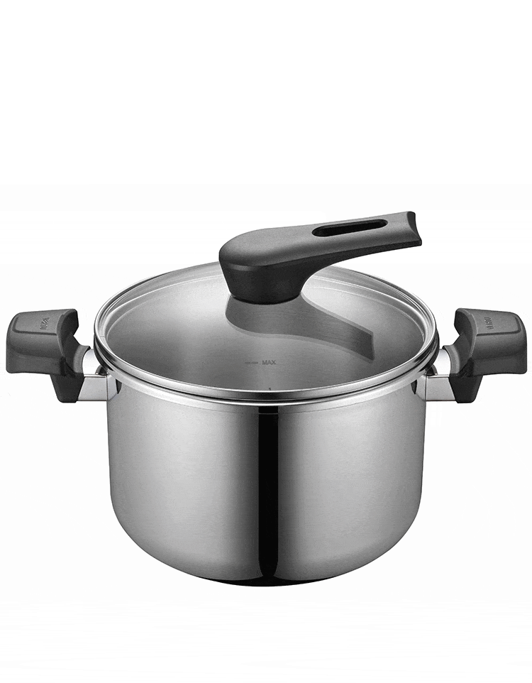 Toàn bộ cấu trúc được làm từ thép không gỉ cao cấp 430 3 lớp nguyên khối (đáy và thân) dầy 2.5mm, Bộ nồi áp suất Inox từ tính POONGNYUN (PN) 3 trong 1 VGPC2-SET tối đa hóa hiệu suất dẫn và giữ nhiệt làm thức ăn chín đều cực nhanh mà thức ăn không bị cháy khét, tiết kiệm thời gian cũng như chi phí nhiên liệu nấu và giảm sự phá hủy chất dinh dưỡng trong quá trình nấu ăn một cách hiệu quả. Hơn thế nữa, với công nghệ nấu áp suất khoa học để tăng điểm sôi của nước lên 120ºC và chịu được sự gia nhiệt lên đến 400ºC làm thức ăn chín mềm nhanh hơn so với khi nấu bằng áp suất điện.