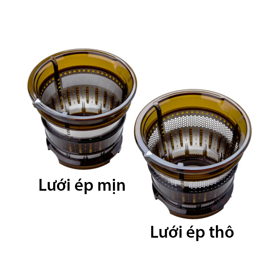 2 bộ lưới lọc mịn (lưới ép trái cây) và thô (lưới xay sinh tố) cho phép bạn tạo ra ly nước ép phù hợp với lượng xơ mà bạn muốn có trong ly nước ép của mình. Thông thường bạn chọn lưới lọc mịn (lưới có lỗ nhỏ) cho việc ép các loại trái cây cứng hoặc rau củ như: ổi, cà rốt, cóc…Lưới thô (lưới có lỗ to) sẽ phù hợp khi ép các loại trái cây, hoa quả mềm như: dưa hấu, đu đủ hoặc xoài…