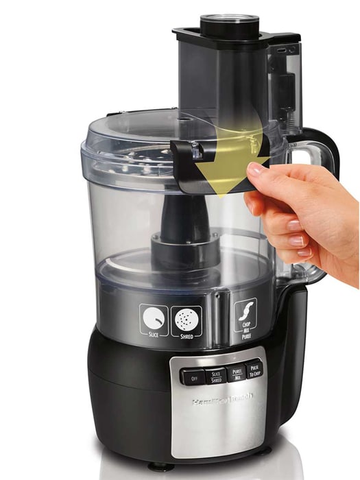 Bạn vẫn còn cắt sẵn tất cả các thành phần trước khi xay? Nếu bạn đang làm điều đó, tại sao phải bận tâm với một bộ xử lý thực phẩm? Bộ xử lý thực phẩm Hamilton Beach® Stack & Snap™ 10 Cup có thể chứa cả nguyên liệu lớn và nhỏ, do đó tiết kiệm nhiều thời gian cho bạn khi chế biến món ăn.