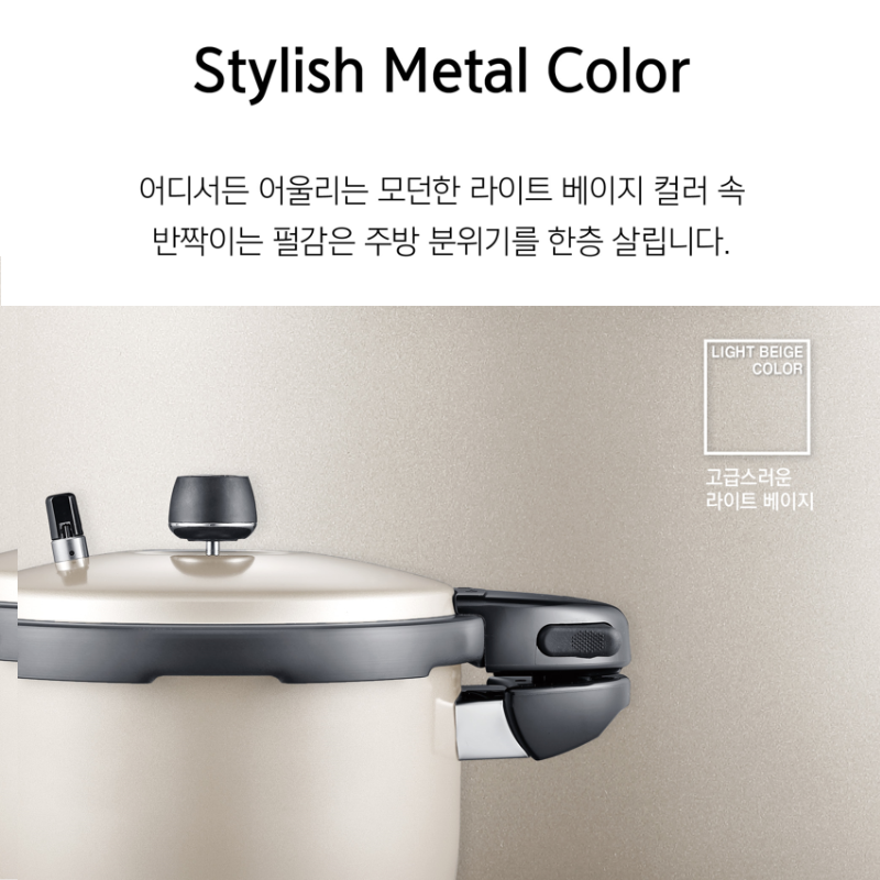 Nồi áp suất nhôm chống dính IH POONGNYUN BEDPC-06(IH) dung tích 3.5 lít nhập khẩu từ Hàn Quốc thu hút ánh nhìn với thiết kế theo phong cách Châu Âu hài hòa với cảm giác sang trọng, hiện đại và tinh tế tăng độ thẩm mỹ cho nhà bếp cũng như phù hợp với nhu cầu của người sử dụng tiện lợi cho việc chế biến các món ăn khác nhau cho gia đình như hầm, luộc, kho, hấp, nấu cháo, nấu cơm, nấu cơm trộn, nấu gạo lức… hay chế biến những món yêu cầu độ mềm, cần nấu trong thời gian ngắn [30 – 90 phút] như hầm xương, gân… Bên cạnh đó, với công nghệ tráng men hiện đại nhất “Hard Anodizing” không tróc sơn, chống gỉ sét, chống ăn mòn bên ngoài nồi giữ nồi áp suất lâu phai màu và không mau dơ.
